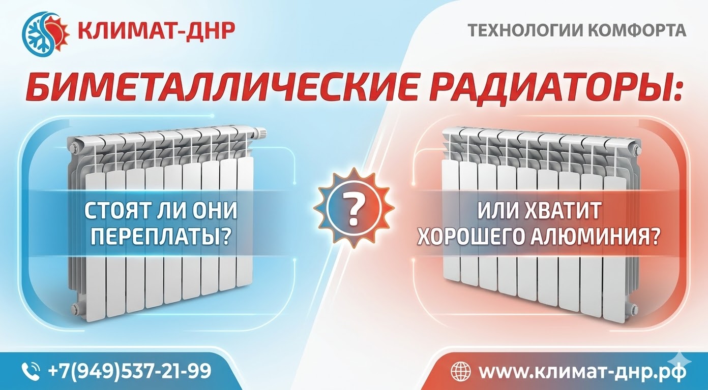 Инженеры магазина «Климат-ДНР» предупреждают: разница скрыта внутри. И в зависимости от того, где вы живете, попытка сэкономить на металле может обернуться катастрофой. Давайте разберемся, когда биметалл — это необходимость, а когда — пустая трата денег.