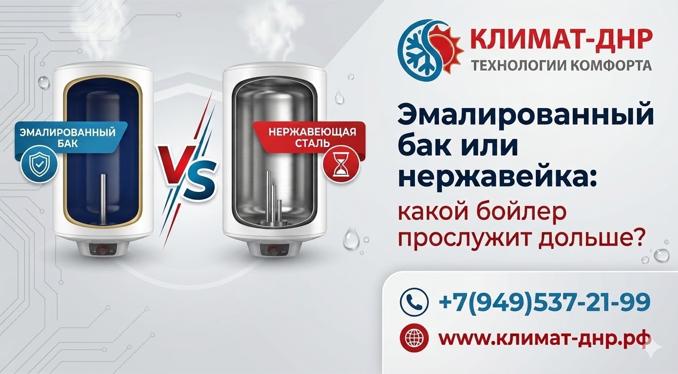 Специалисты компании Климат-ДНР подготовили объективный разбор обеих технологий. Давайте выясним, какой бойлер действительно прослужит дольше в условиях наших водопроводных сетей.