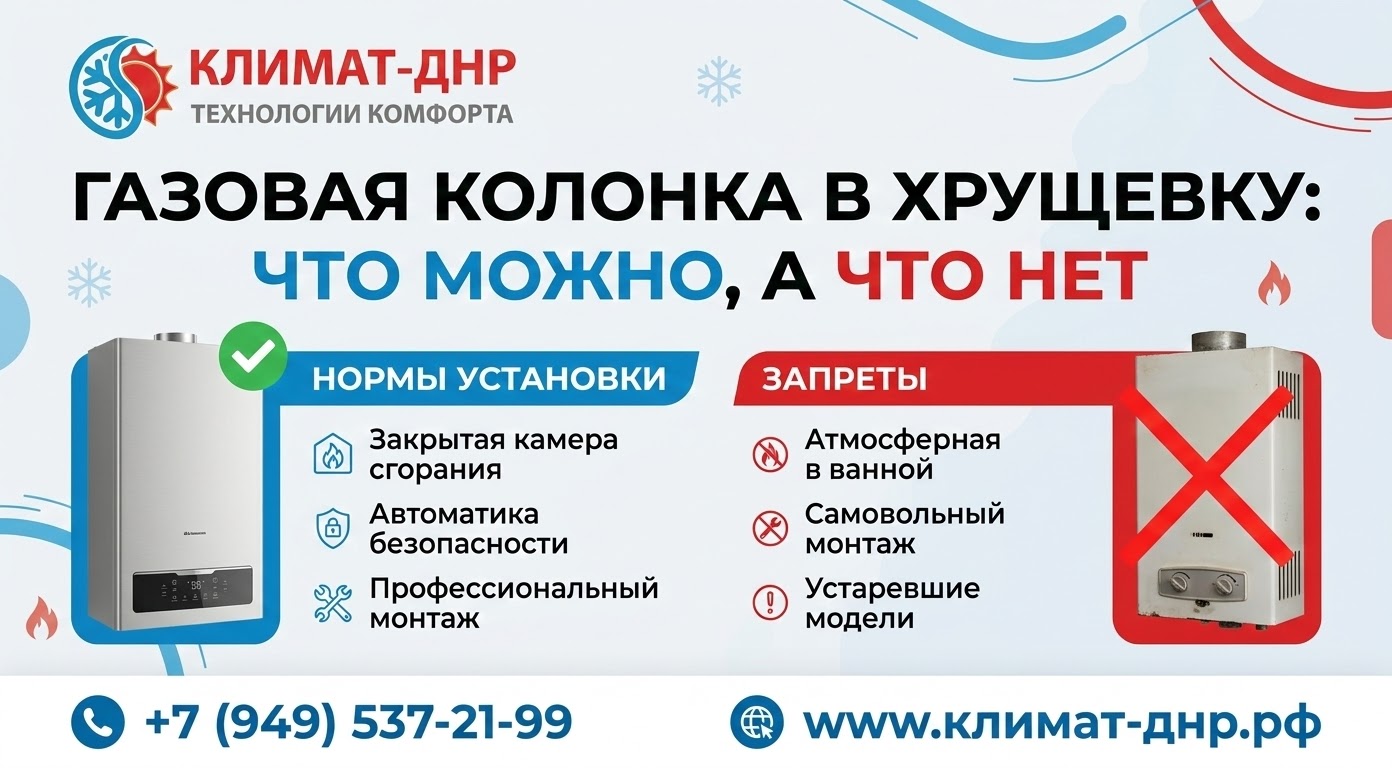 Нельзя просто пойти в строительный магазин и купить любую понравившуюся газовую колонку. Инженеры компании Климат-ДНР рассказывают, как выбрать водонагреватель для старого фонда, чтобы он стабильно работал и прошел все проверки горгаза без штрафов.
