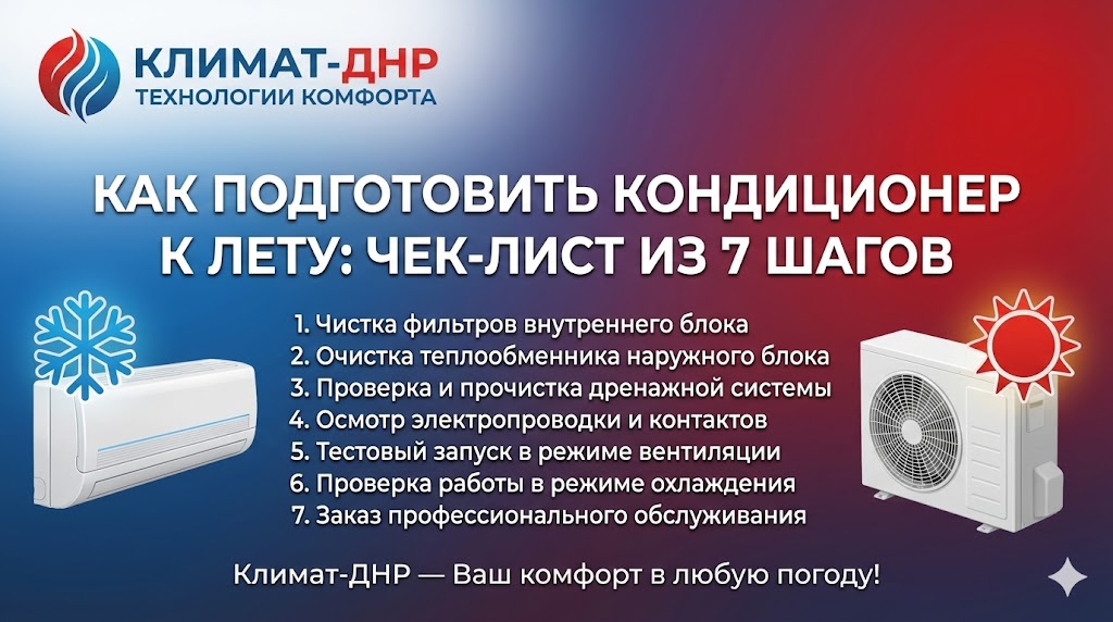 Доверьте это профессионалам «КЛИМАТ-ДНР». Быстро, чисто и с гарантией подготовим вашу технику к сезону!