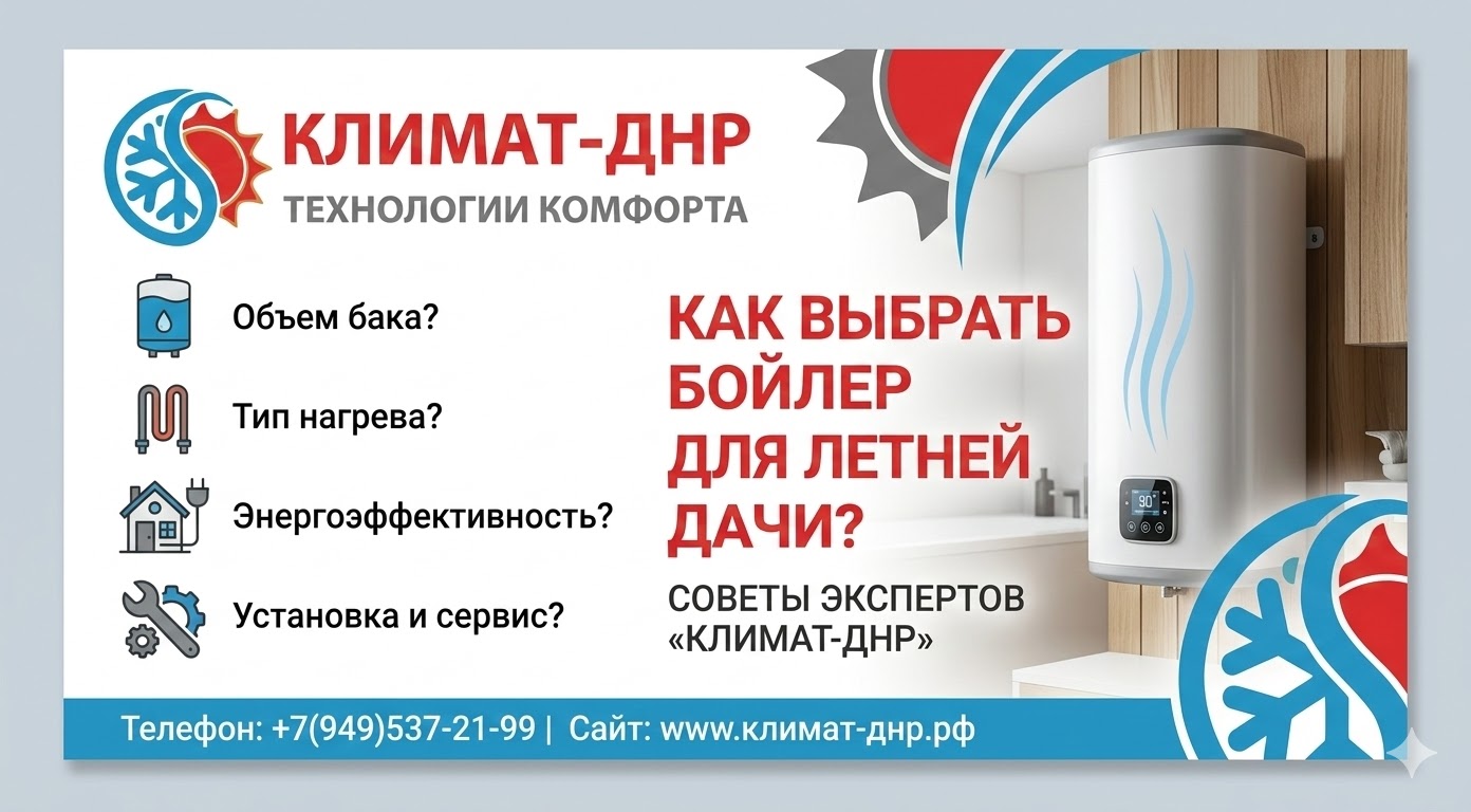 Инженеры компании Климат-ДНР собрали главные правила, которые помогут вам выбрать идеальный водонагреватель для летней дачи, не переплатить за ненужные функции и уберечь бак от разрыва зимой.