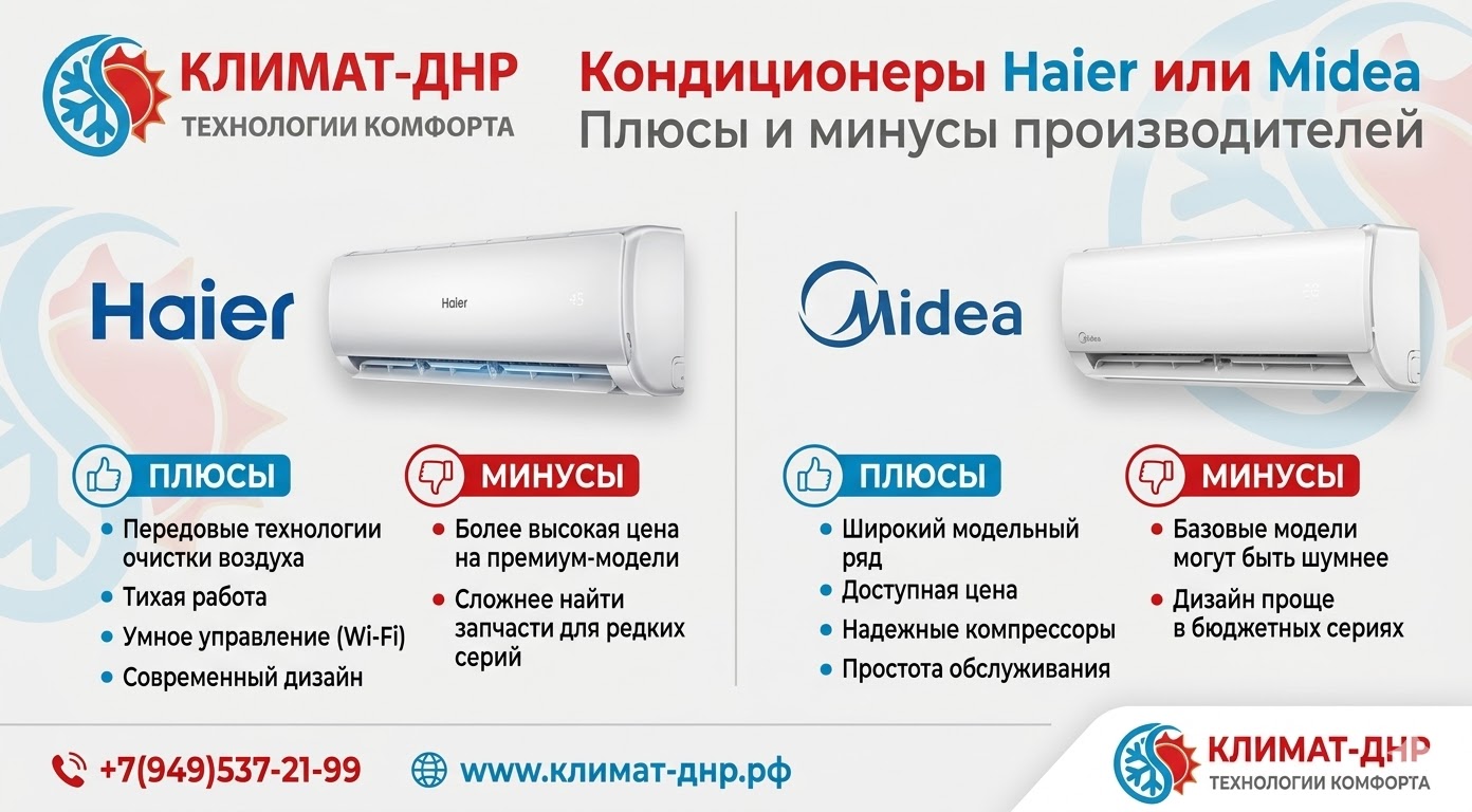 Инженеры и монтажники магазина «Климат-ДНР» установили сотни кондиционеров обоих производителей. В этой статье мы без рекламной шелухи разберем плюсы и минусы каждого бренда, сравним их топовые модели и дадим 10 практических советов по выбору.