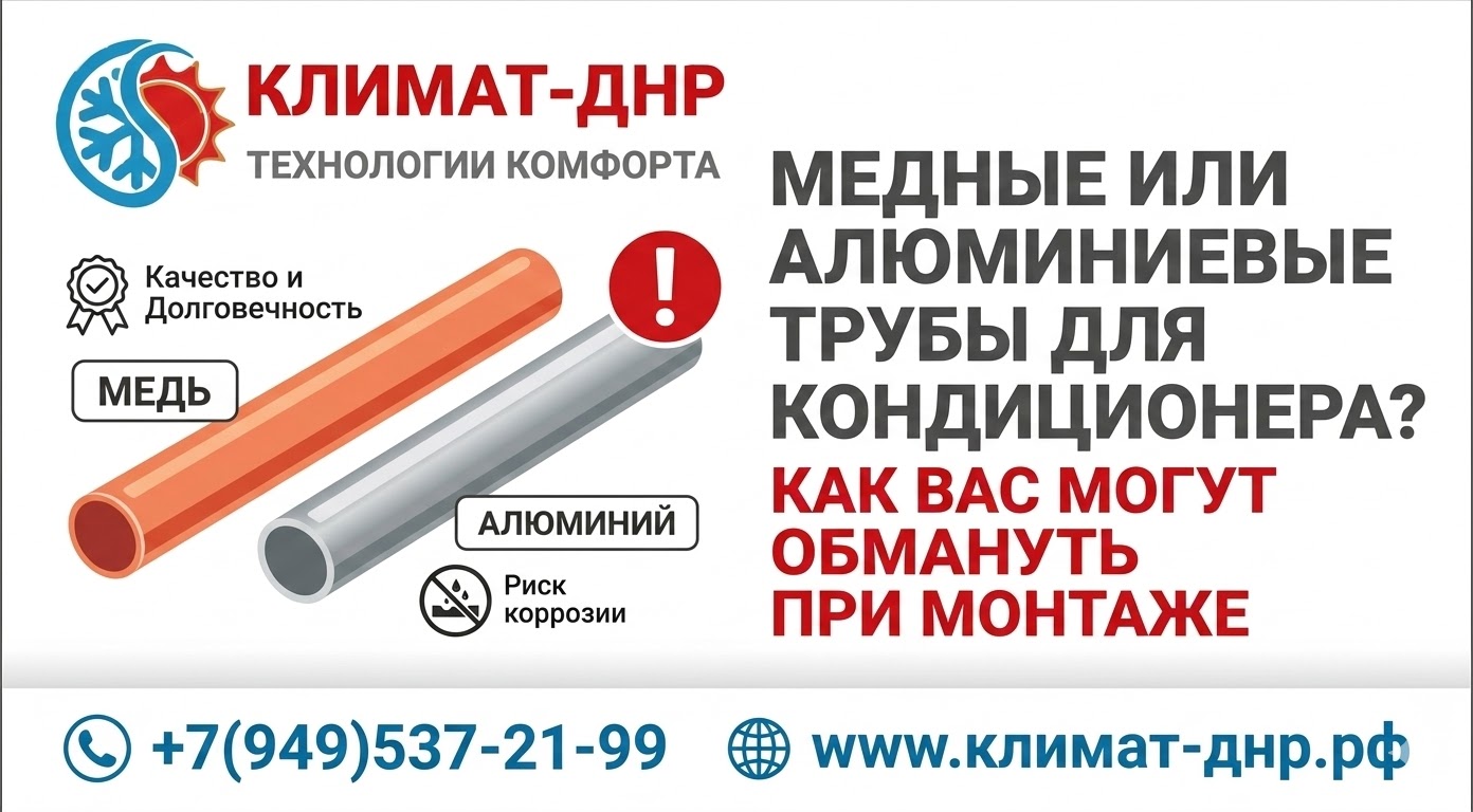 На рынке монтажных услуг ДНР существует огромный соблазн сэкономить. Специалисты компании Климат-ДНР рассказывают, почему замена меди на алюминий — это заложенная бомба замедленного действия для вашего бюджета.