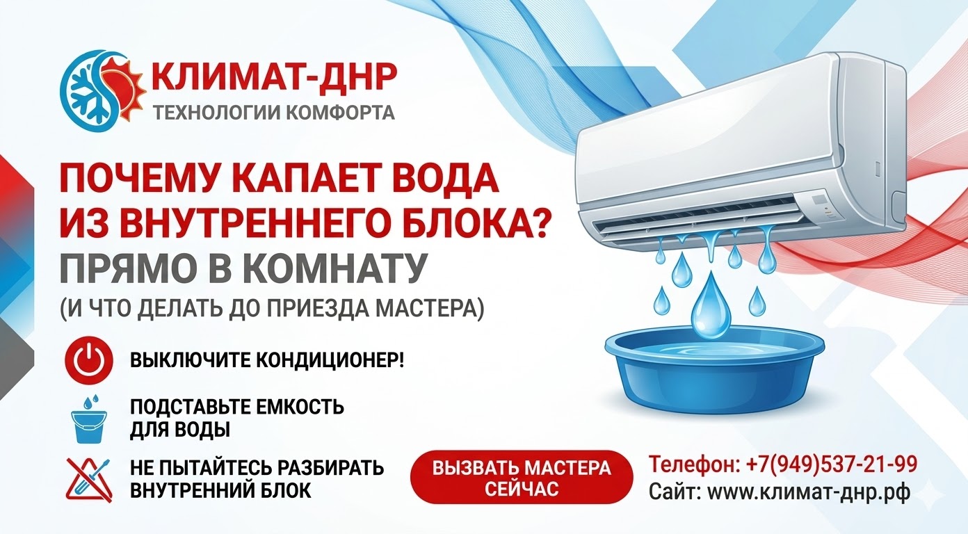 Паника в этот момент — нормальная реакция. Но инженеры «Климат-ДНР» успокаивают: в 90% случаев эта поломка не требует покупки новых дорогостоящих запчастей. Давайте разберем, почему вода пошла не по тому пути, и что вам нужно сделать прямо сейчас, чтобы спасти ремонт.