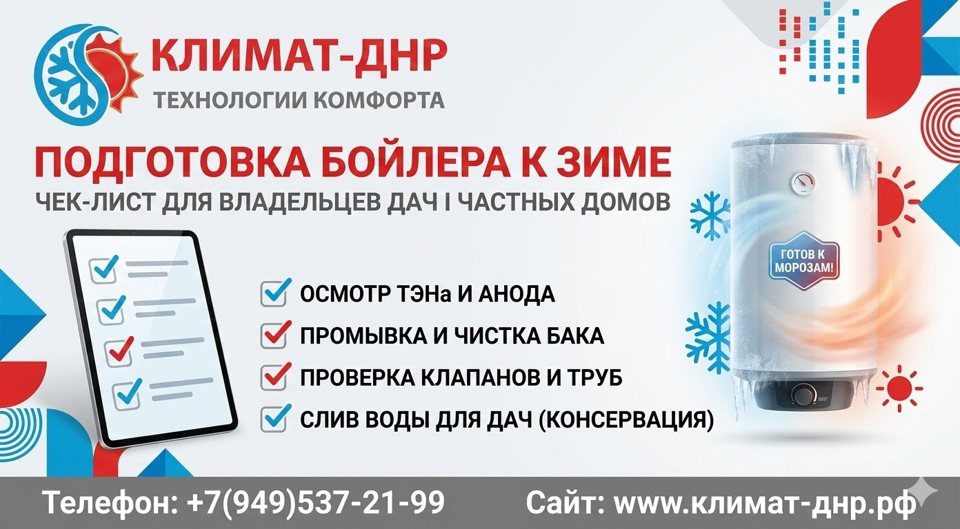 Инженеры специализированного магазина Климат-ДНР подготовили пошаговый чек-лист по правильной консервации бойлера на зиму. Эти простые действия сберегут вашу технику и защитят дом от весеннего потопа.
