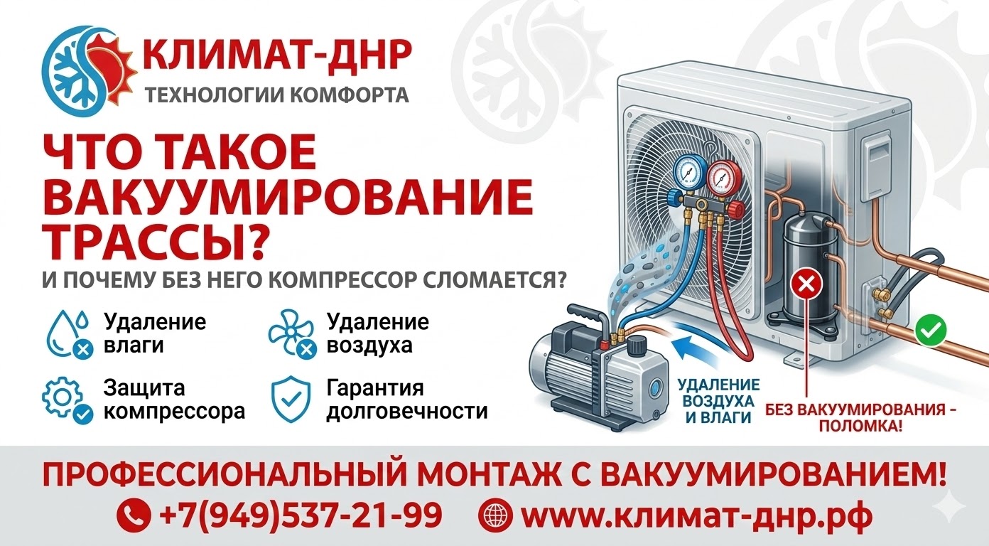 Специалисты компании КЛИМАТ-ДНР предупреждают: отказ от вакуумирования — это самый быстрый способ убить компрессор вашего нового кондиционера. Разбираемся в физике процесса и последствиях халатности.