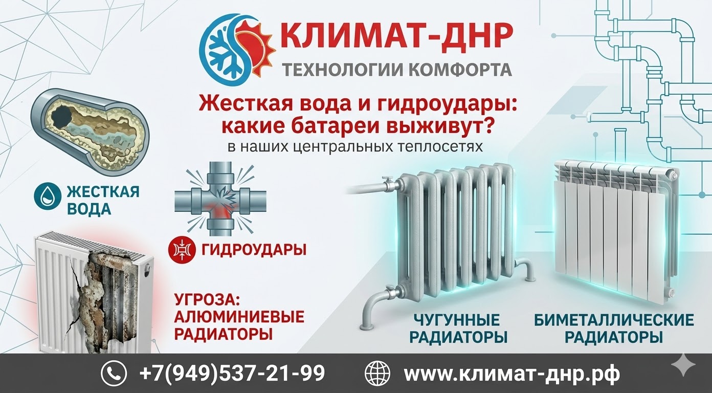 Инженеры «Климат-ДНР» годами изучают «болезни» теплосетей нашего региона. Если вы планируете менять батареи в квартире, вам необходимо знать о двух главных врагах, которые ежедневно атакуют ваши радиаторы изнутри.