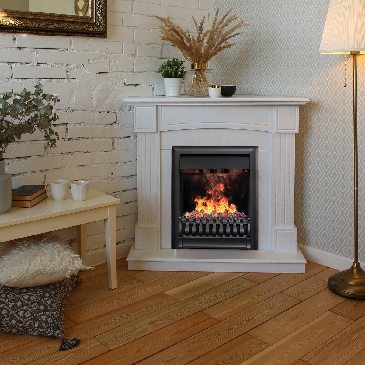 Изящный угловой портал Andrea создаст стильный акцент в небольшой гостиной или спальне в традиционном стиле. В сочетании с очагом каминокомплект Adelaida добавит аристократичности и утонченности пространству и подчеркнет индивидуальность хозяев дома.