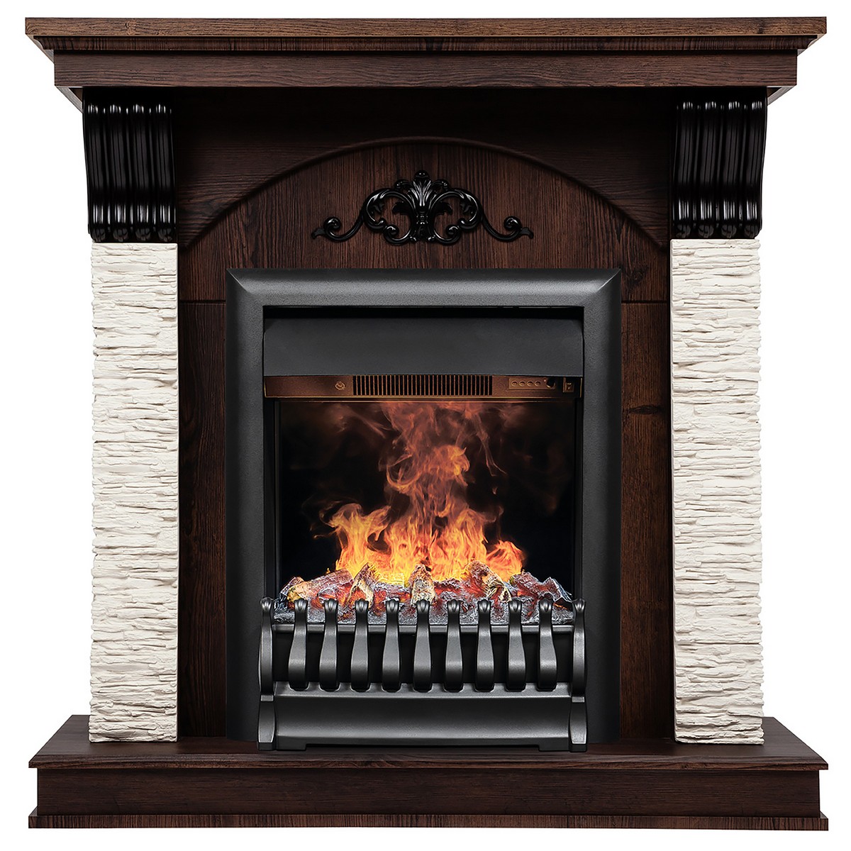 Электрический очаг Oregan 3D! На 100% достоверный и реалистичный эффект пламени. Очаг снабжен пультом дистанционного управления, обладает защитой от перегрева. Предусмотрена регулировка высоты пламени. 2 режима обогрева (0,75 или 1,5 Квт)
