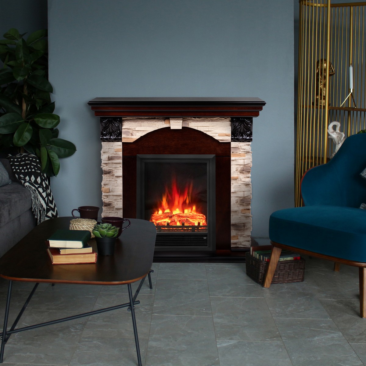 Электрический камин RealFlame Eugene - это обязательный предмет интерьера для вашей гостиной, кухни, спальни или прихожей его предназначением является украшение и декорация вашего дома или офисного помещения. Достигается это посредством имитации пламени на экране очага и конвекторного обогревателя встроенного в корпус. Двухуровневый тепловентилятор обогреет за полчаса любое помещение - спальню, кухню, его можно просто поставить на пол или встроить в каминное обрамление, в нишу или в мебель - есть датчик защиты от перегрева. Камин используют в любую погоду зимой, осенью или весной, в квартире или на даче. Летом можно не включать обогрев - проекционная технология пламени имитирующая настоящий огонь работает в независимом режиме. У электрического очага Eugene по мимо звуковой имитации потрескивания дров есть дополнительные особенности: Пульт ДУ, регулировка яркости пламени, таймер отключения. Камин достаточно универсален в выборе стиля и дизайна оформления помещения.