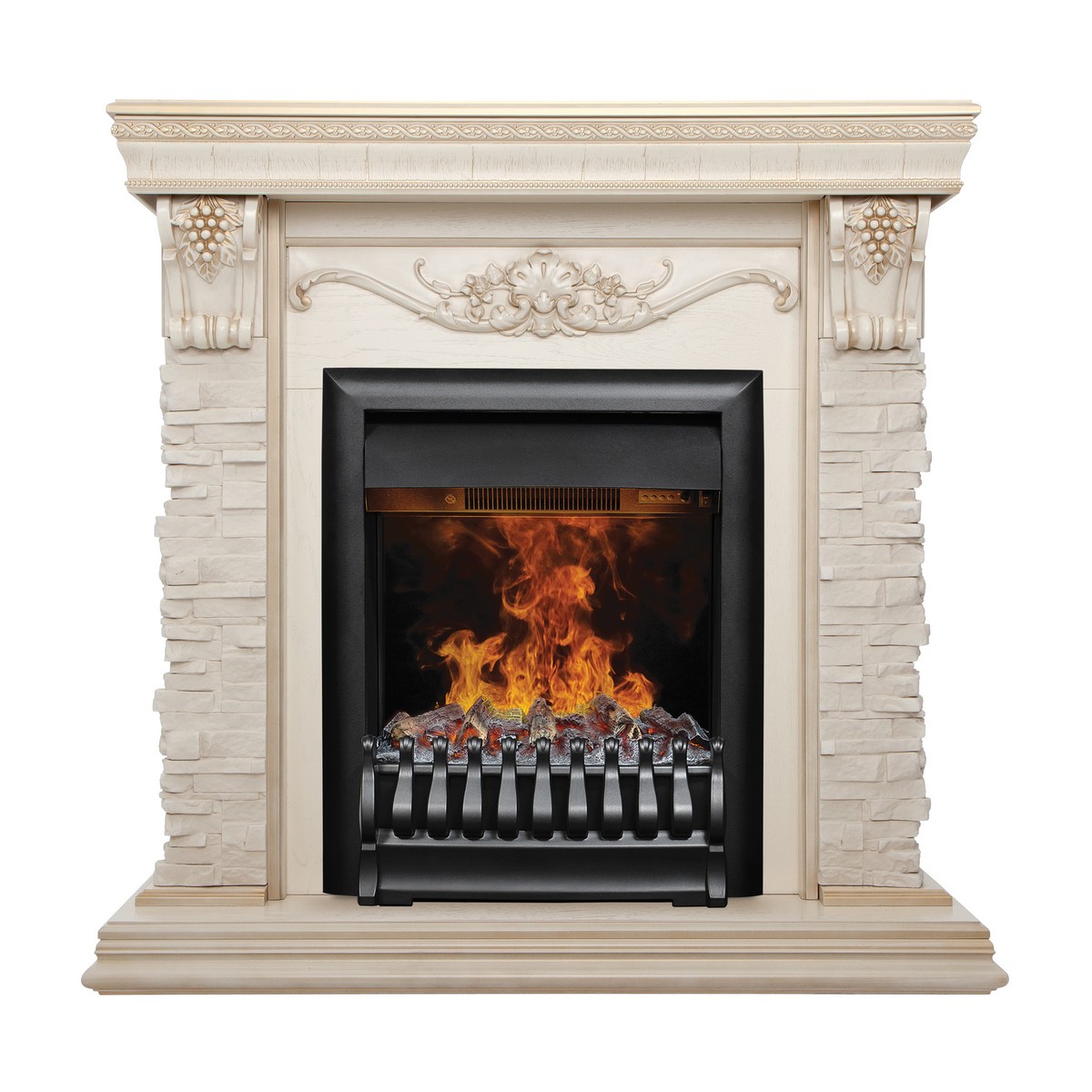 Электрокамин RealFlame Patricia WT белый дуб с золотой патиной c очагом 3D Oregan