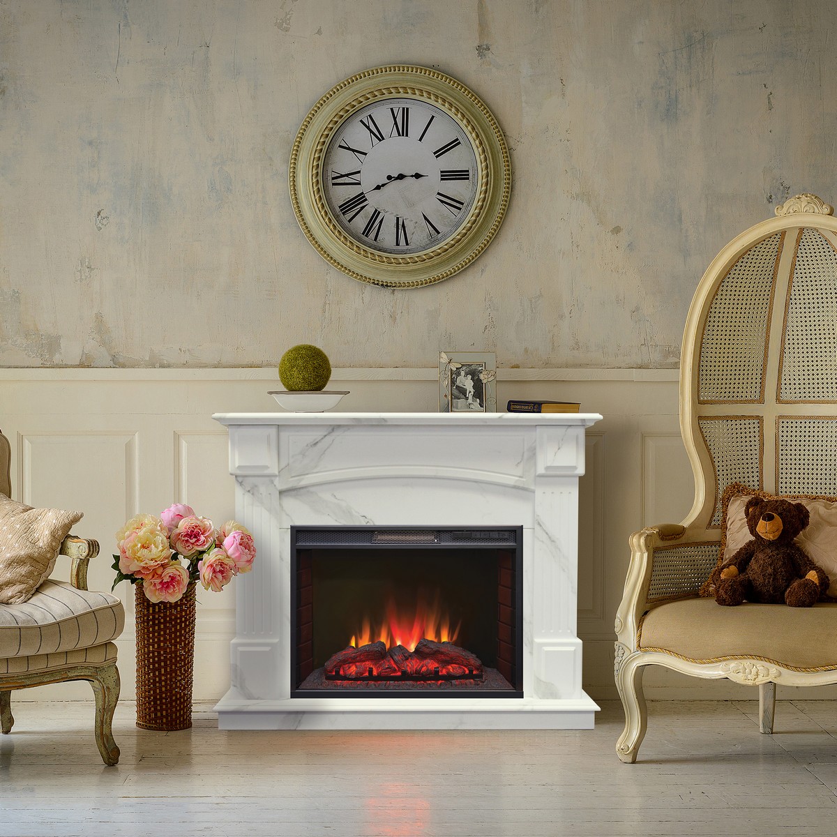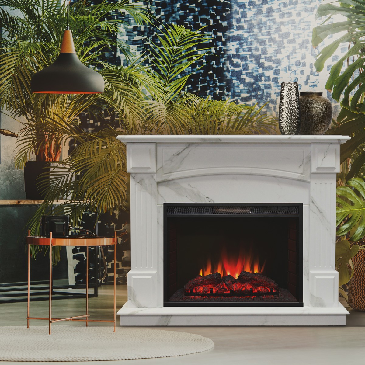 Электрокамин RealFlame Carolina 24/25,5 WT цвет мрамор белый с очагом Sparta 25,5 LED