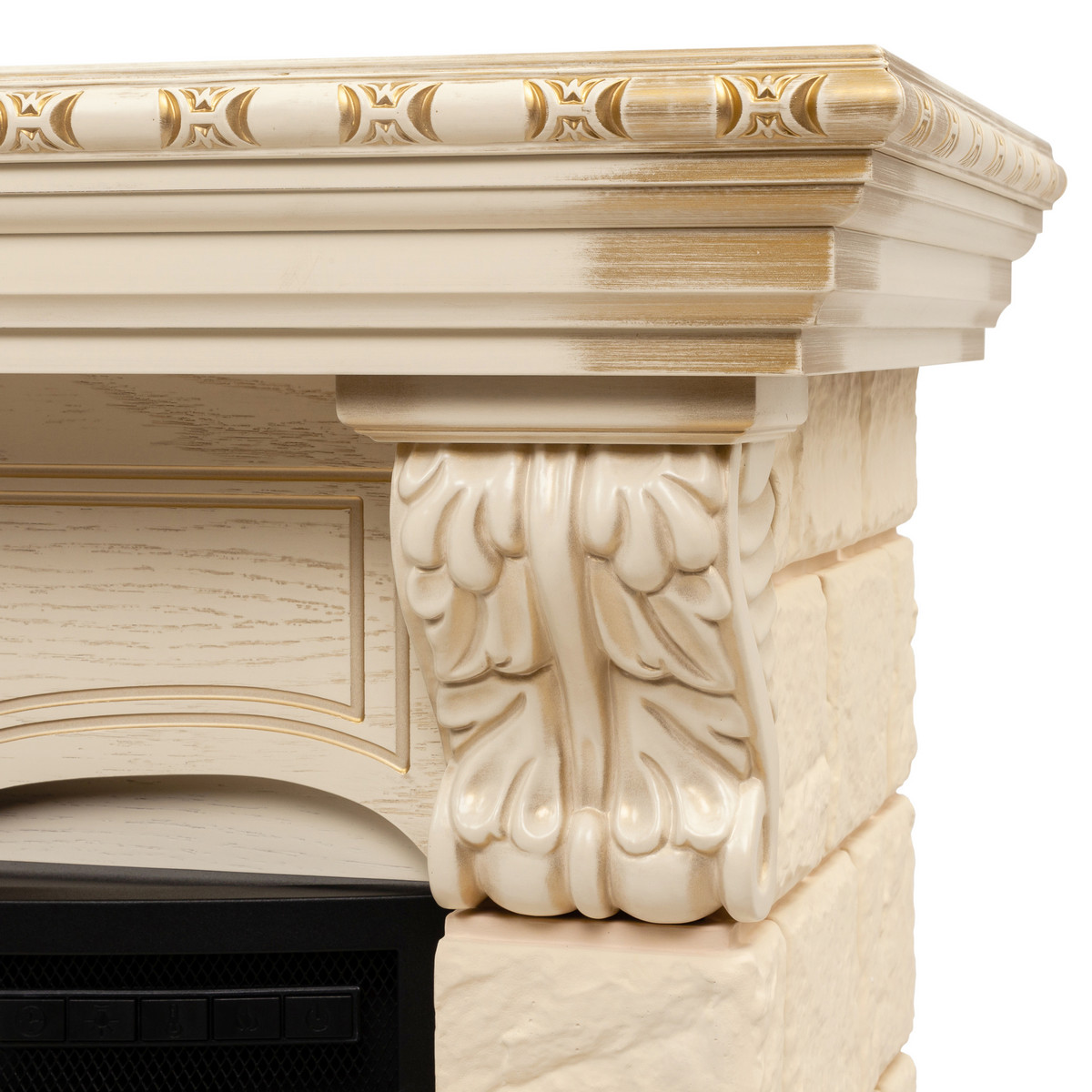 Портал каминный из МДФ RealFlame Bolero, МДФ, белый дуб с золотой патиной