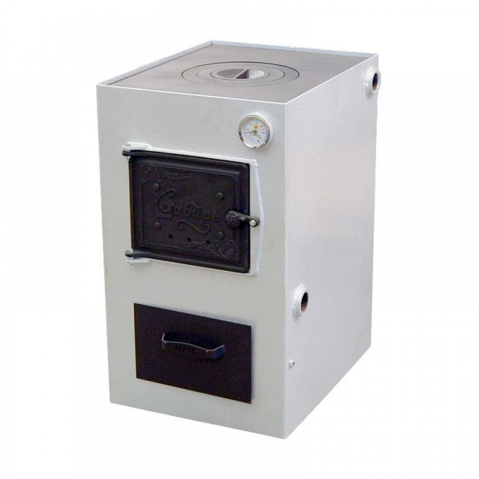 Сибирь КВО-10 это пионер в линейке котлов с варочной поверхностью, в котором предусмотрена возможность установки автоматического регулятора тяги подачи воздуха. Данный котел функционирует на твердом топливе: дрова, прессованные брикеты, уголь и способен отапливать загородные дома площадью до 100 м2, оборудованные системами водяного отопления с естественной или принудительной циркуляцией. На данный котел возможна установка блока ТЭН, мощностью 3-6 кВт. Рекомендуемое рабочее давление, предусмотренное конструкцией данного котла составляет не более 1 Бар.