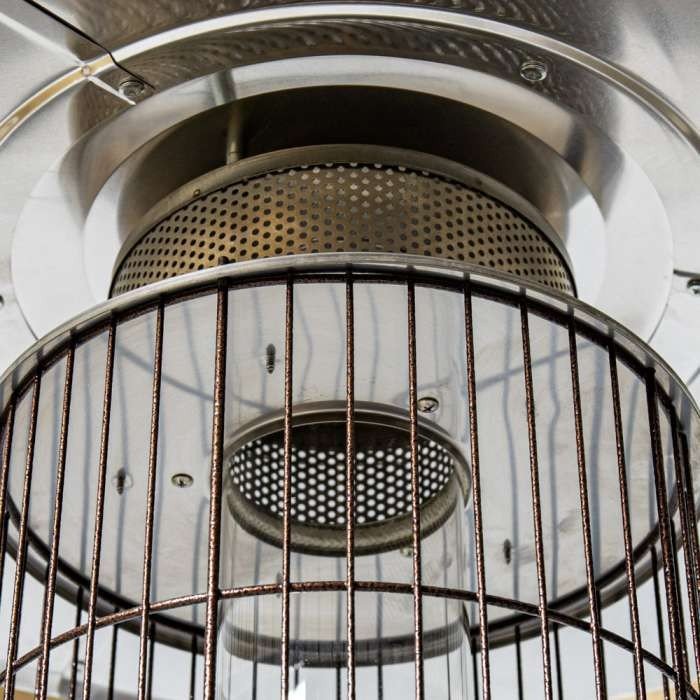 Уличный газовый WWT13D Pro выполнен в форме колбы, оканчивающейся алюминиевым отражателем. Нижняя его половина закрытая, а верхняя представляет из себя прозрачную трубку из огнеупорного стекла, внутри которой горит пламя. Такой дизайн выглядит привлекательно сам по себе, а в сумерках он еще и создает особую, романтическую атмосферу.