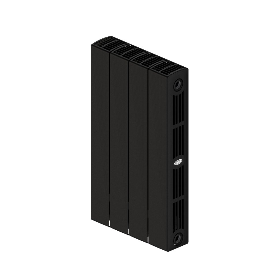 Rifar Supremo 500 выполнен из четырех секций и обладает боковым подключением. Корпус радиатора окрашен в антрацитовый цвет. Биметаллический дизайн обеспечивает высокую теплоотдачу прибора. Подходит для современных систем обогрева жилых и коммерческих пространств.