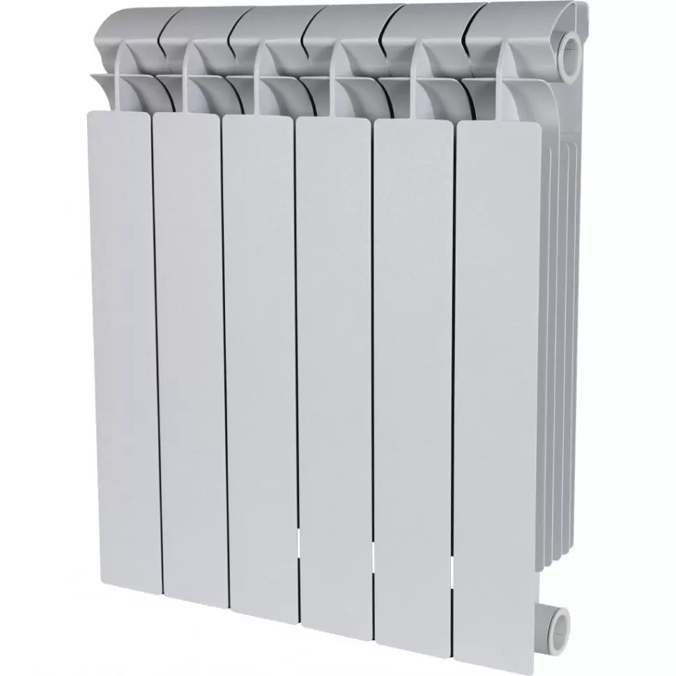 Каждая секция радиатора имеет наружное оребрение и закладной элемент. В глубине секции расположены пять вертикальных ребер, а вверху находится конвекционное окошко, чтобы не допустить перегрев прибора и улучшить теплосъем. Между секциями проложены надежные силиконовые прокладки для уплотнения стыков. Их герметичность обеспечивается специально изготовленными канавками. Секции соединяются друг с другом при помощи стальных ниппелей. Коллекторы секций отличаются простотой формы: у них нет карманов, поэтому воздушные пробки не образуются. Радиатор имеет небольшой вес и очень компактен.