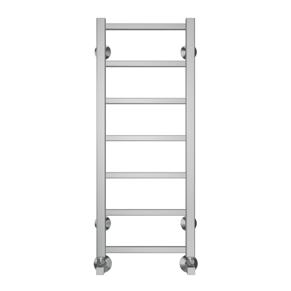 Модель водяного полотенцесушителя Terminus Контур относится к линейке в стиле хай-тек, тяготеющей к лаконичным формам и хромированным поверхностям, и отличается наличием дополнительной прогреваемой полки для хранения и сушки полотенец.