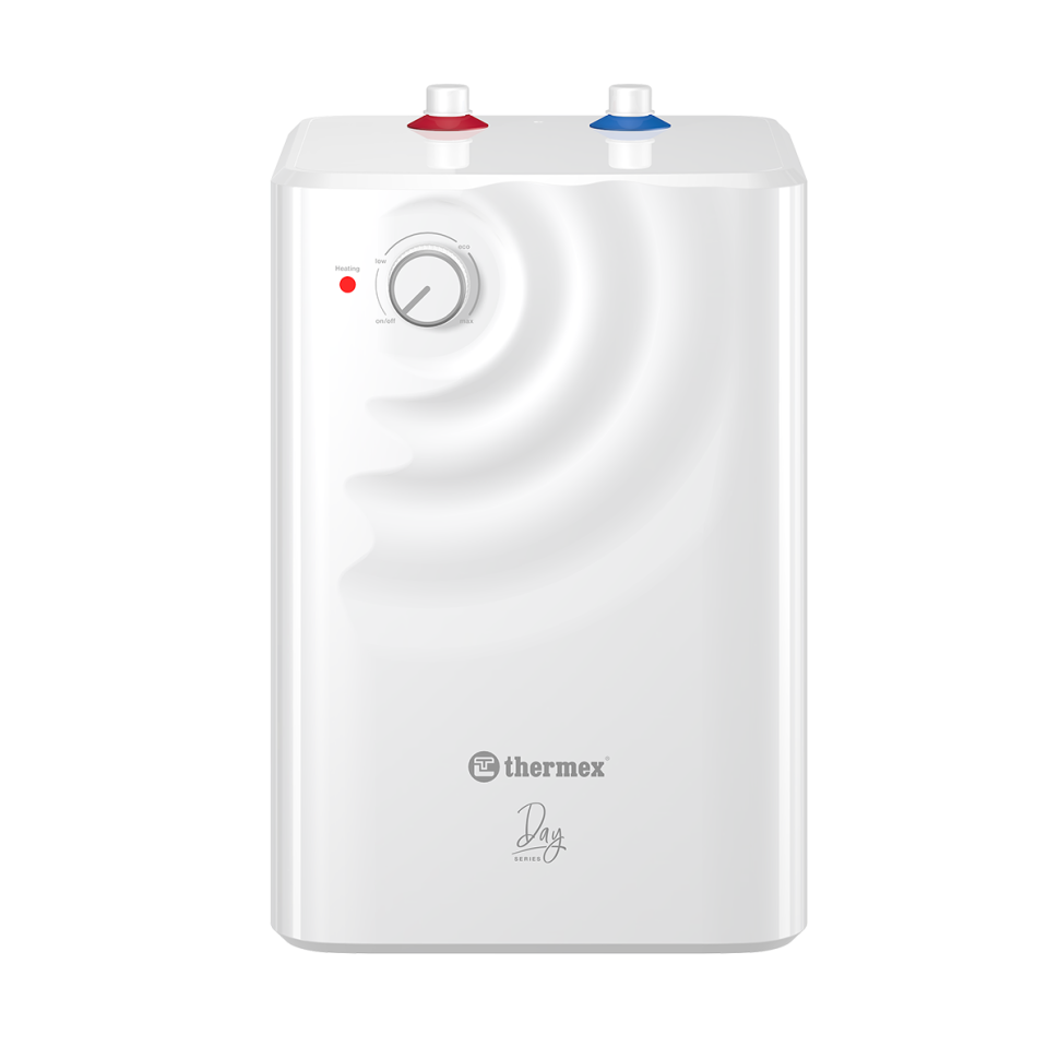 Накопительный электрический водонагреватель Thermex Day 10 U – малолитражный накопительный водонагреватель с удобным и компактным форм-фактором, который можно установить под раковину, спрятать в нишу или шкаф. Экологичное внутреннее покрытие бака надежно защищает от коррозии и повышает устойчивость к гидроударам. Настроить температуру легко с помощью колесика на передней панели.