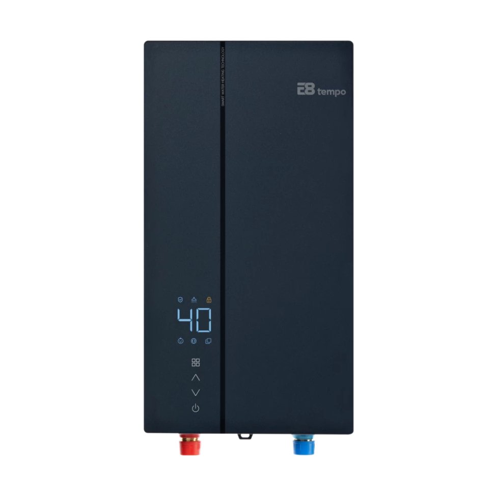 Проточный электрический водонагреватель E8 tempo RW90 синяя стеклянная панель